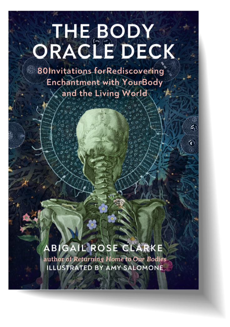 “The Body Oracle is a sacred, experiential tool that returns us to our first intelligence—our bodies. Abigail Rose Clarke’s words move with reverence and clarity, offering a framework for the spirituality of somatics that is both poetic and usable. She’s got it down to an exact science and lifts it to an art. This deck is tactile, grounded, and alive. Each card invites a practice, a possibility, a way of listening that reorients us toward interdependence, tenderness, and truth. Abigail’s radical brilliance makes awe and complexity feel reachable, trustworthy, and wise. This is an oracle made of earth, muscle, breath, and love.”